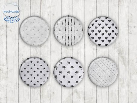 Ideal zum bekleben von Fassungen, wie Ohrstecker, Kettenanhänger, Haarspangen, Verbinder. Gebt Eurem Schmuck den individuellen Look und wählt zwischen 8mm, 10mm, 12mm, 14mm, 16mm, 18mm, 20mm und 25mm Durchmesser.